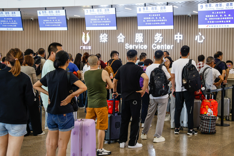 9月23日,不少旅客在广州南站售票中心办理改签退票业务。\n 新华社 刘大伟 摄