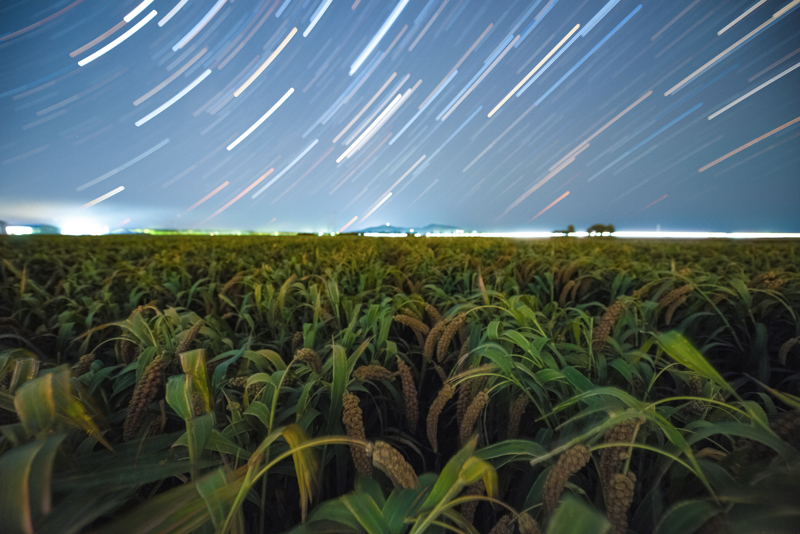 黑龙江省佳木斯市富锦市,星空下的谷子。\n 新华社 曲玉宝 摄