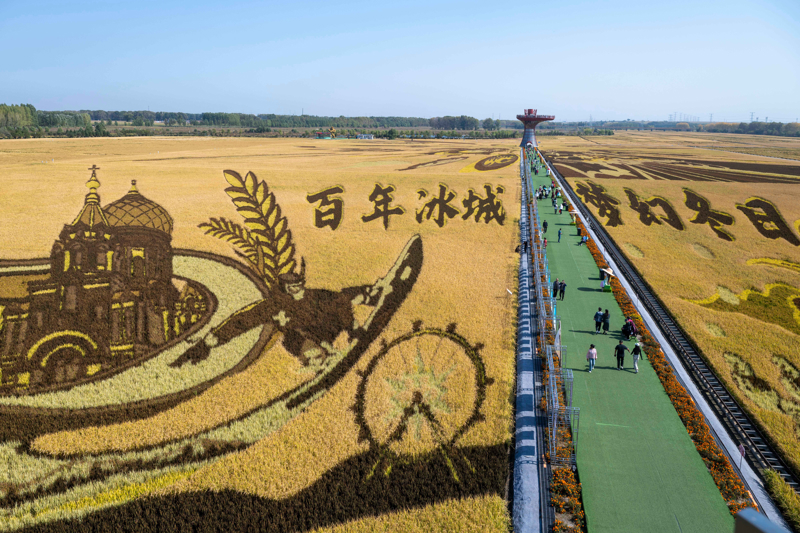人们在2025年中国农民丰收节黑龙江省主场活动上游览。\n 新华社 张涛 摄