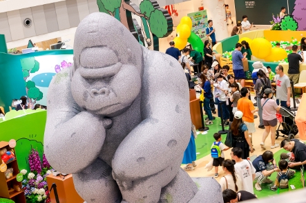 活动现场设置丰富的互动体验区,如萌宝对对碰、趣味套圈等游戏环节,让动物保护知识自然融入游玩体验。南京红山森林动物园的“动物顶流”们以独特方式与观众见面:致敬“思考者”雕塑的大猩猩气模摸鱼沉思、静候游客合影,软萌可爱的小熊猫在DIY专区等待游客为其装点;更有“佛系代表”卡皮巴拉、“网红明星”白面僧面猴杜杜等超人气动物组团营业。商场北区中庭也特别设置科普舞台,消费者既能在自然游逛中了解动物小知识,也可以在森系布景前打卡留念,以轻松有趣的方式传播动物保护理念,为都市家庭打造今夏休闲娱乐新地标。