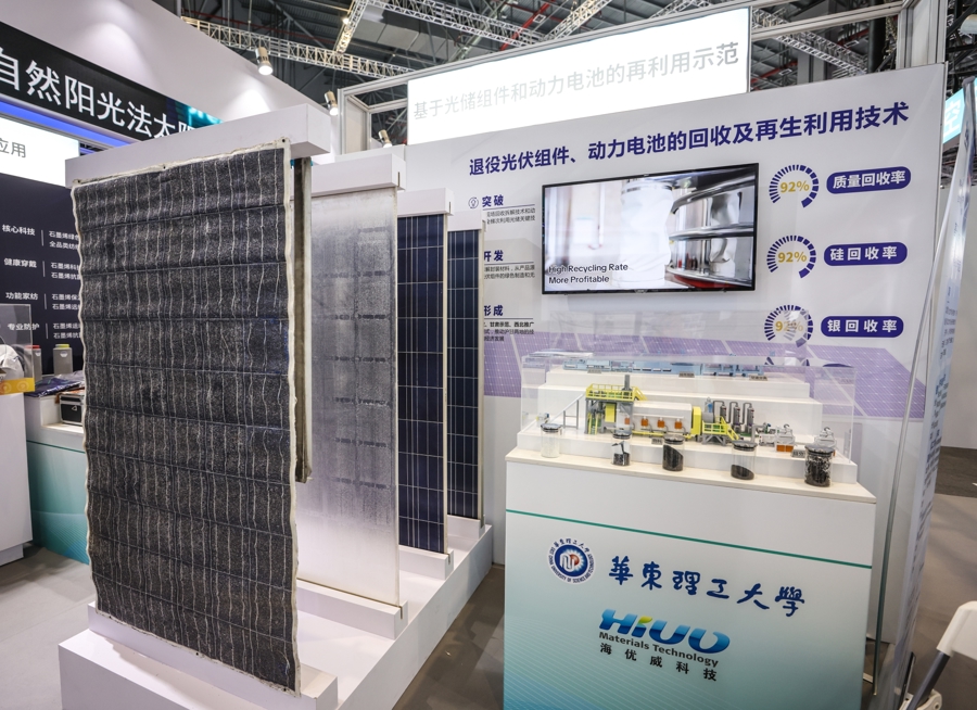 华东理工大学带来的退役光伏组件、动力电池的回收及再生利用技术。