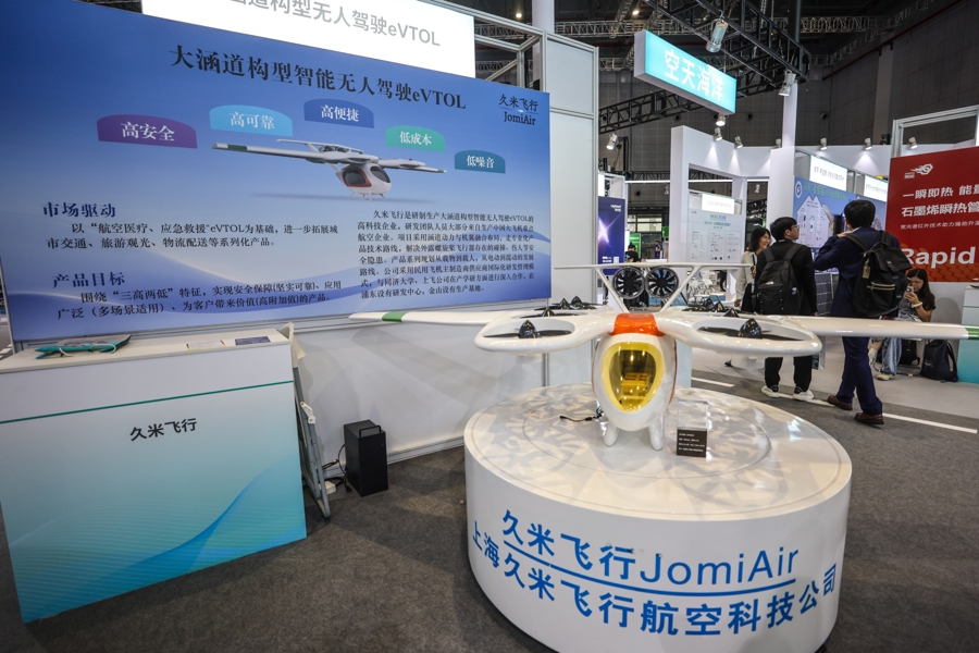 上海久米飞行航空科技有限公司带来的大涵道构型无人驾驶evtol模型。该项目采用涵道动力与机翼融合布局,解决外露螺旋桨飞行器存在的碰撞、伤人等安全隐患。打造智能无人驾驶与全程地面监控的空地一体飞管系统,实现evtol自主智能飞行。